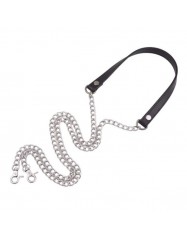 Asa polipiel negro y cadena plateada 120cm